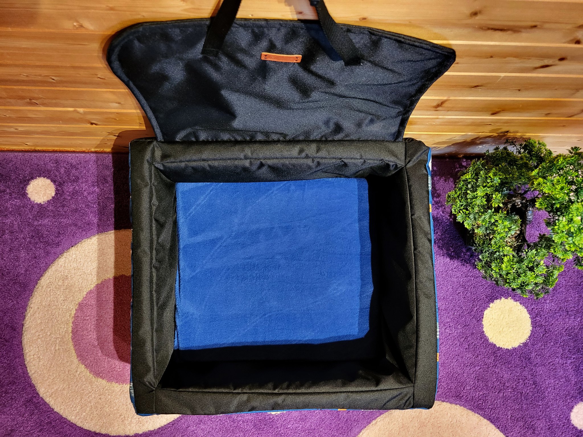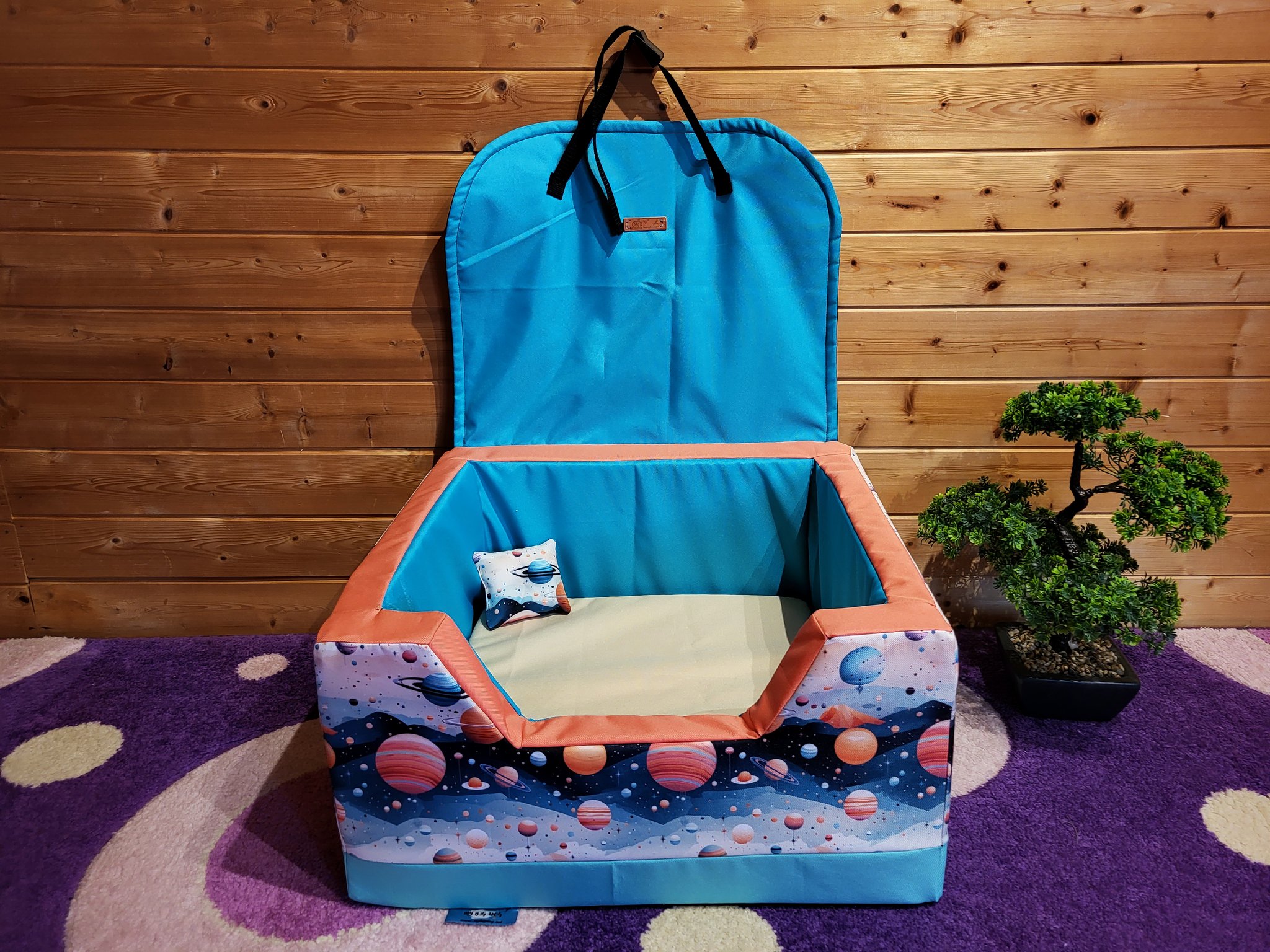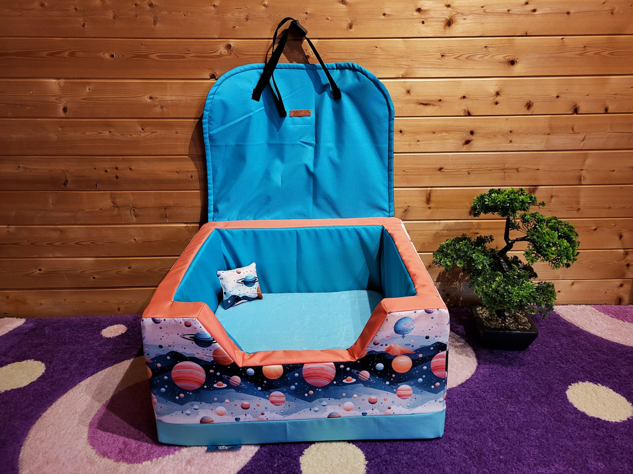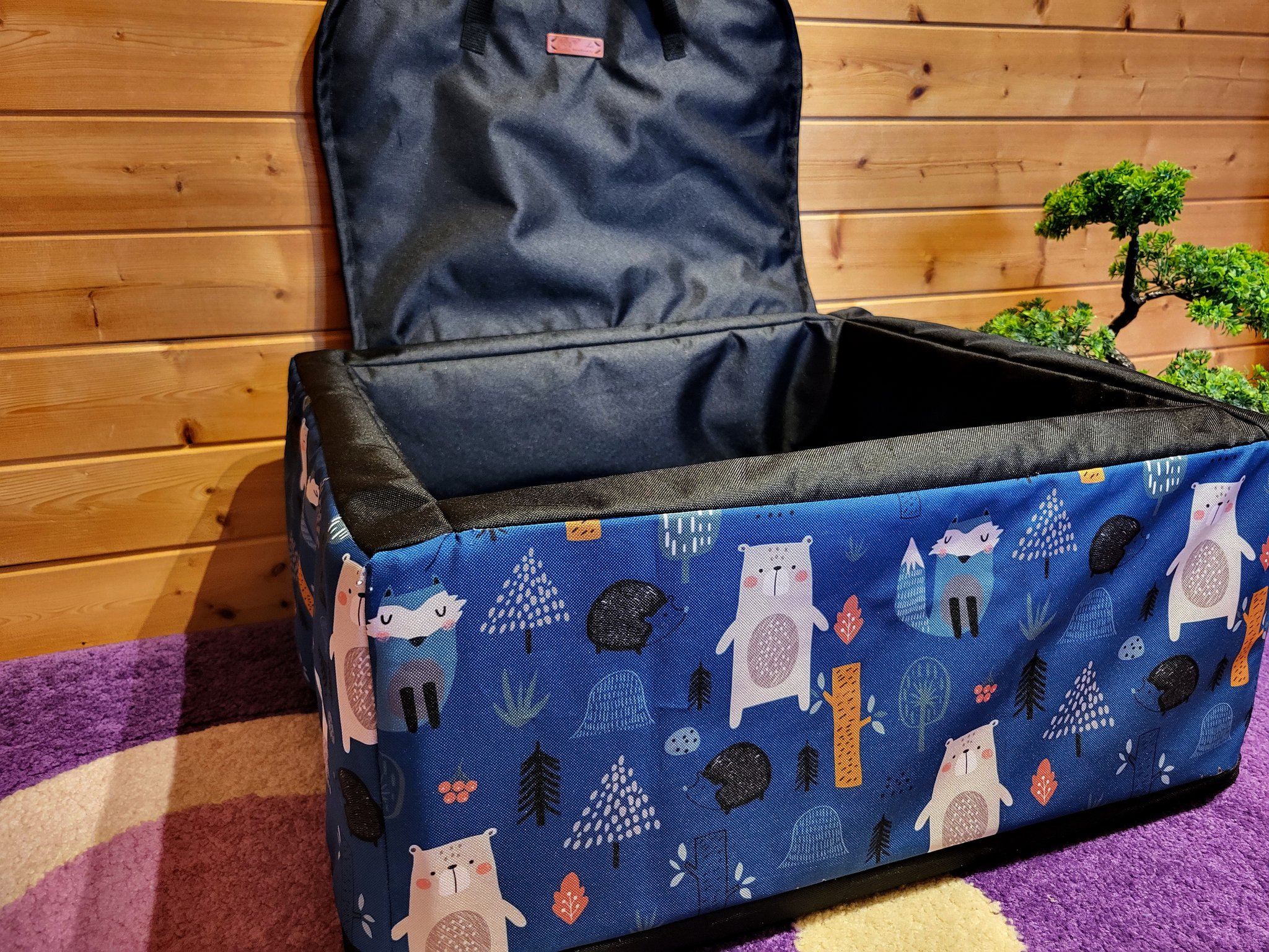 - Hátulján 2 kispárna található, amik az ülések közé szorítva, fixen tartják az utazó dobozt