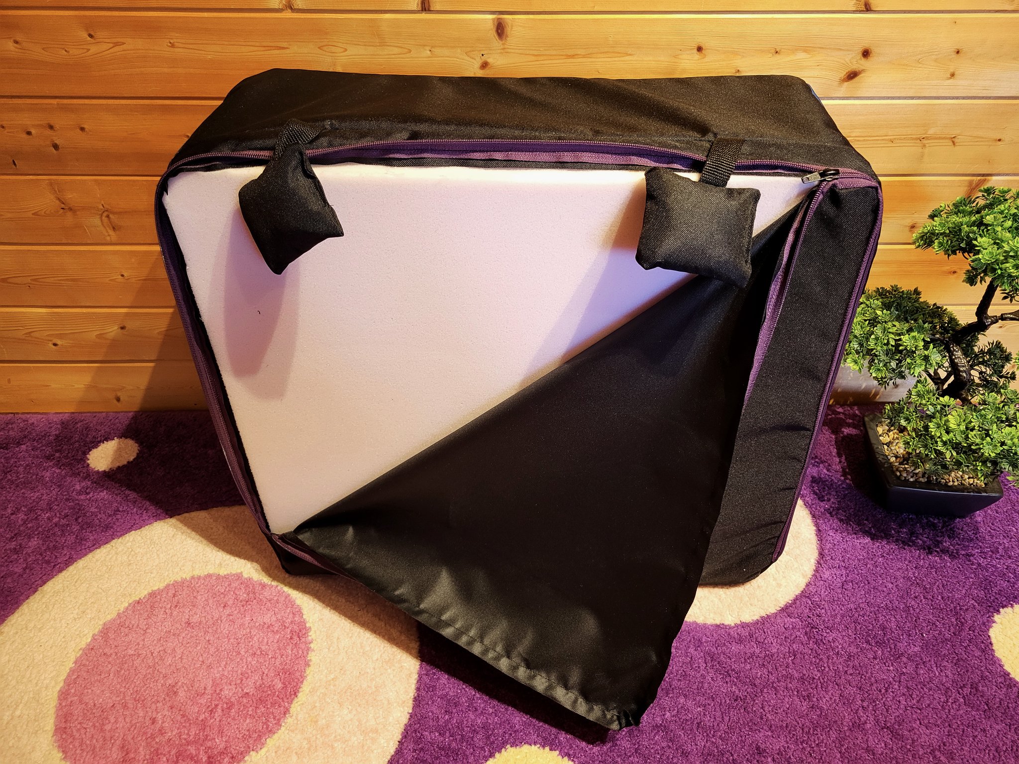 A doboz alján cipzár fut körbe, így a huzat könnyen le-és felhúzható
