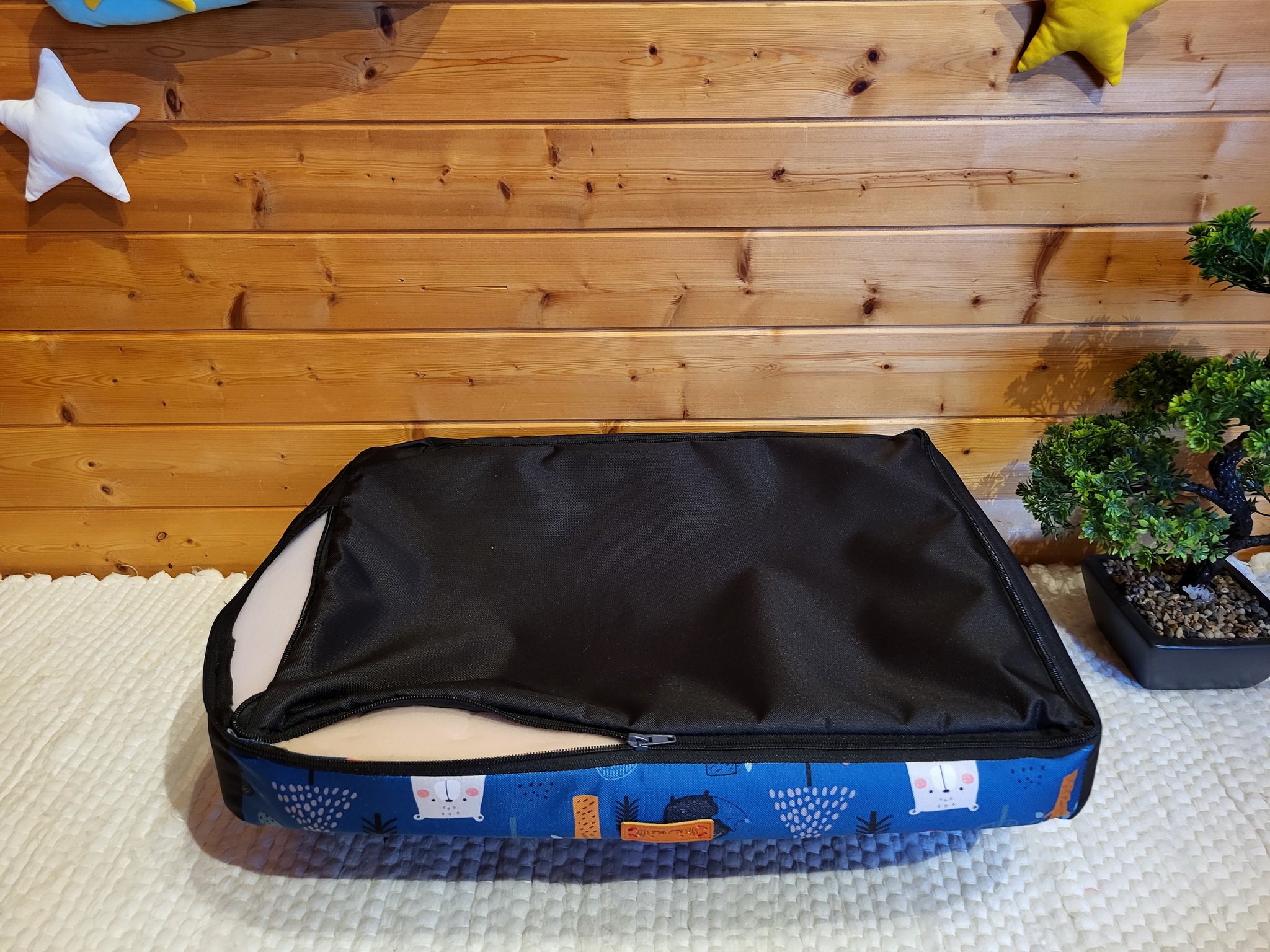 A belső matrac, kivehető, megfordítható, lehúzható és mosható (egyik oldala polár plüss, másik oldala vízálló)