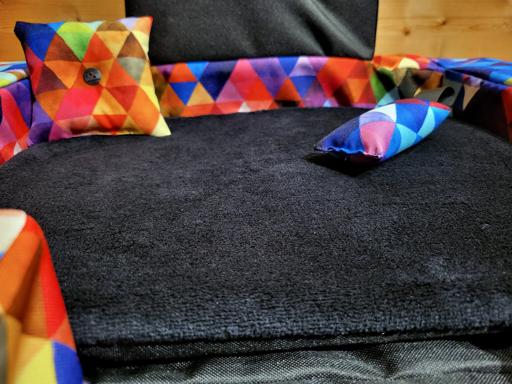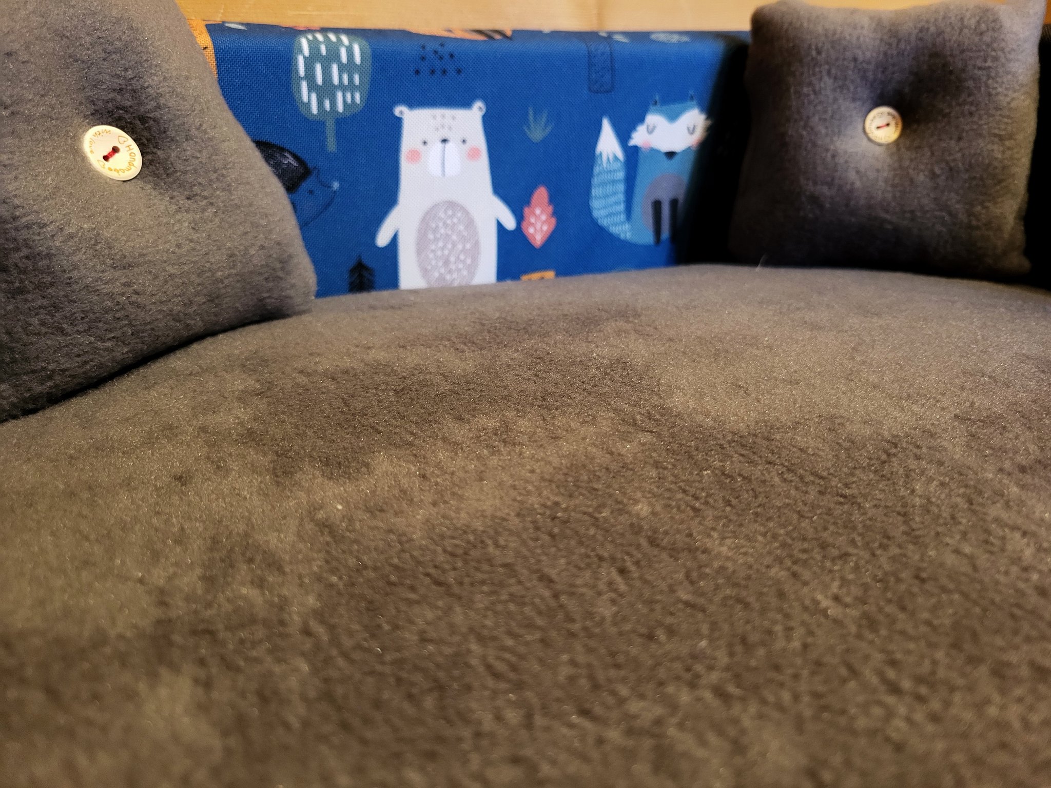 - Kiváló minőségű velúr plüss fekvőfelülete kényelmes pihenést biztosít a hidegebb napokon is