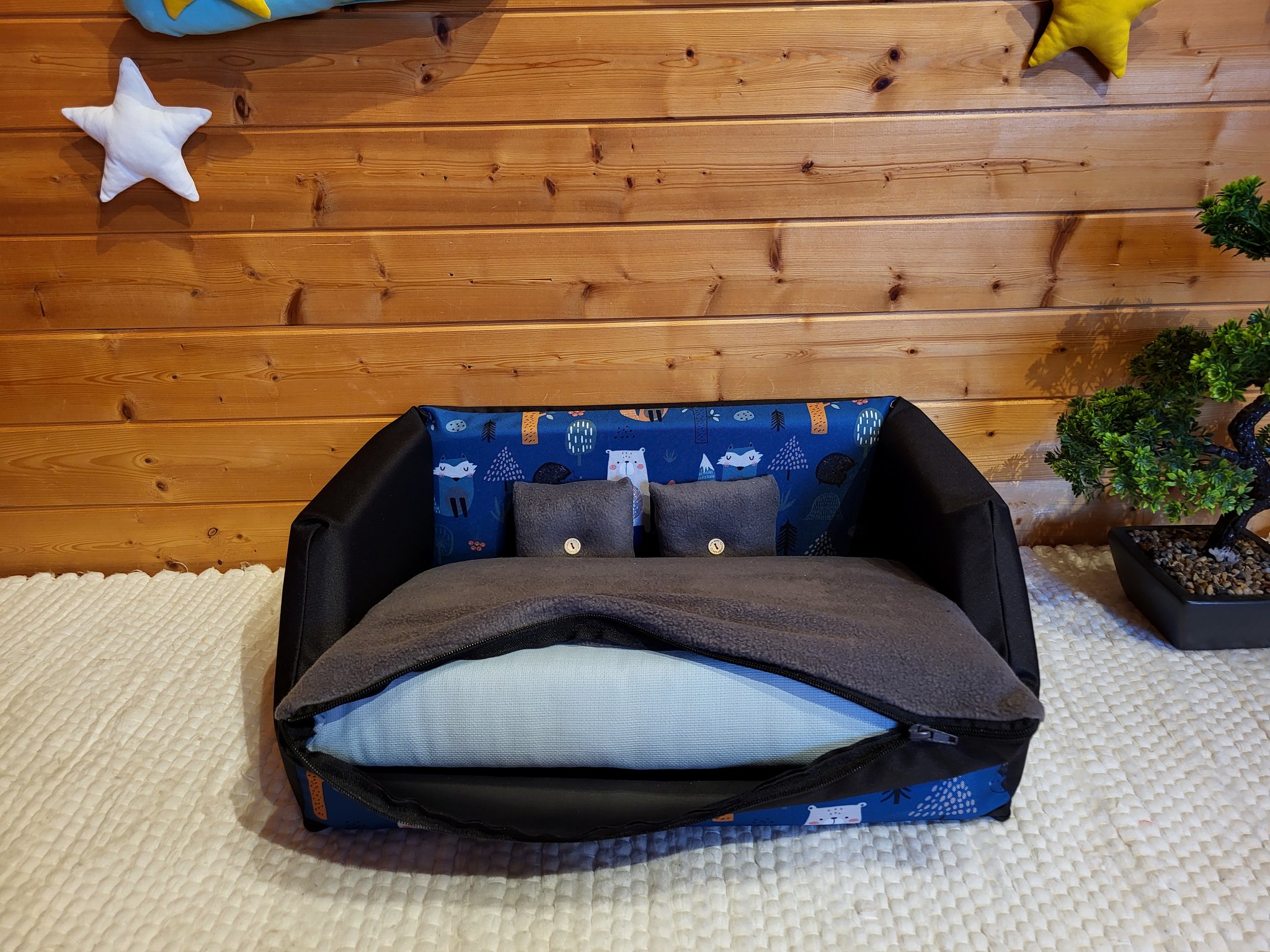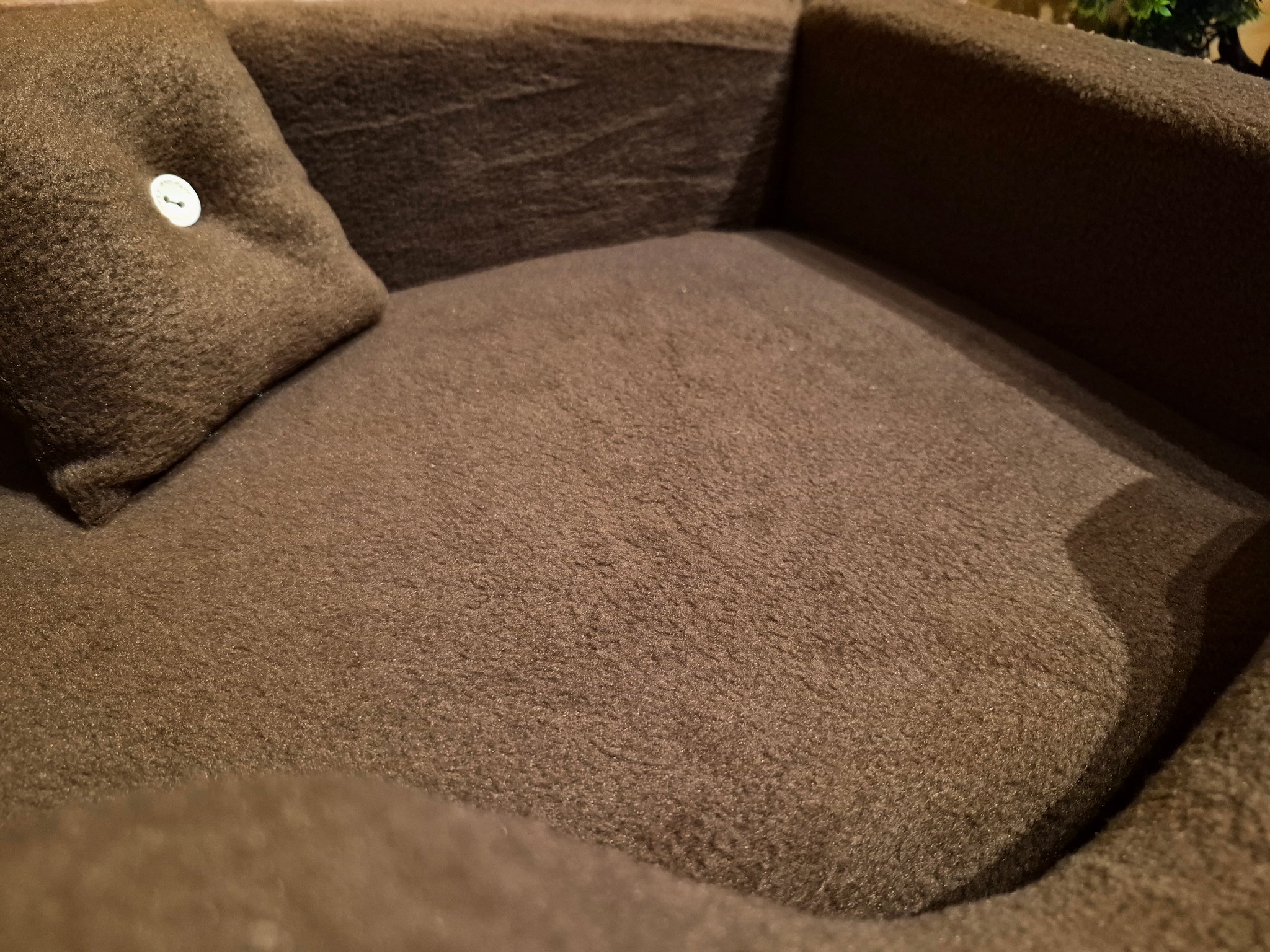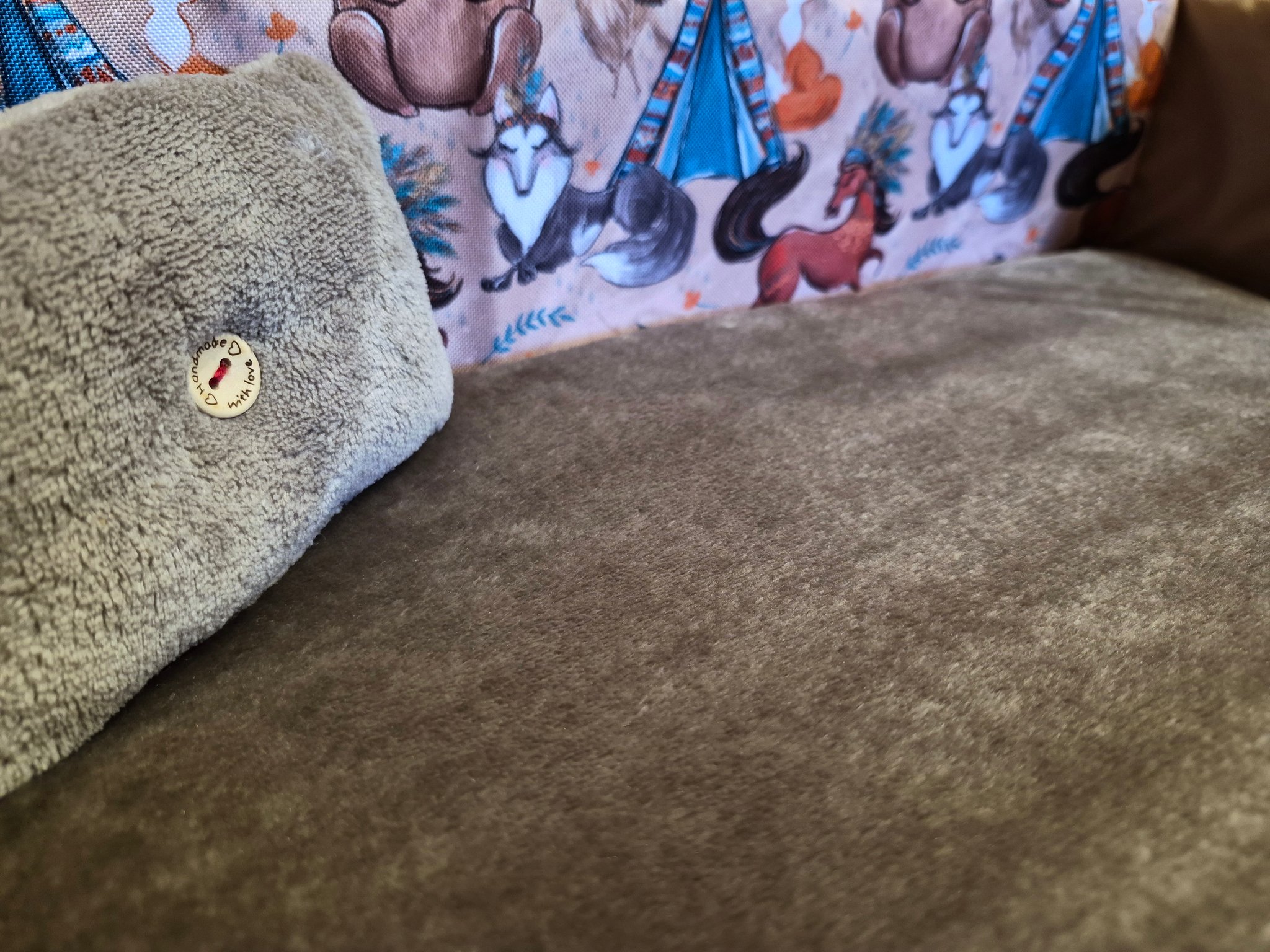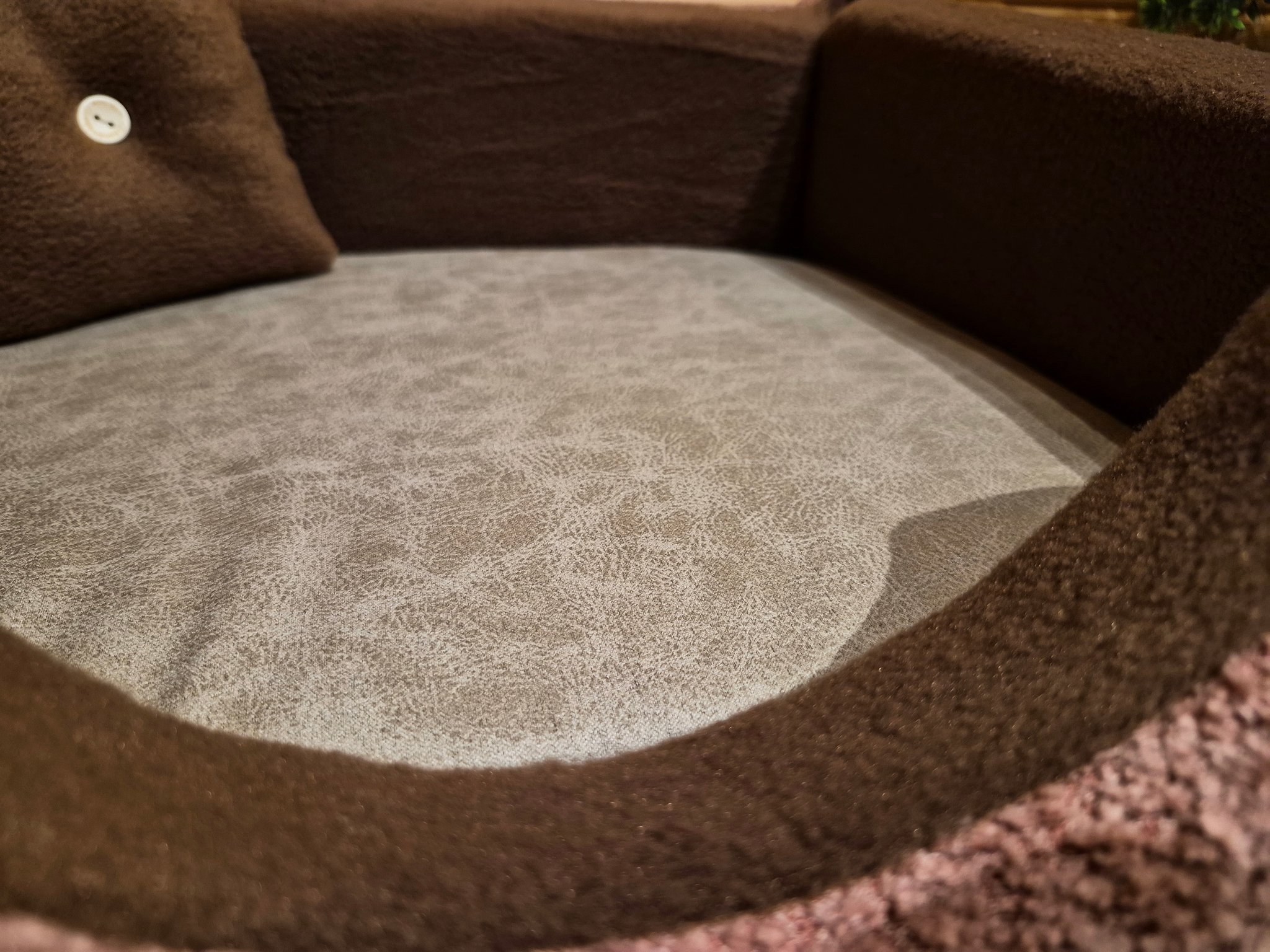 - Anyaga: Víz, szőr és kaparásálló poliészter, illetve polár plüss