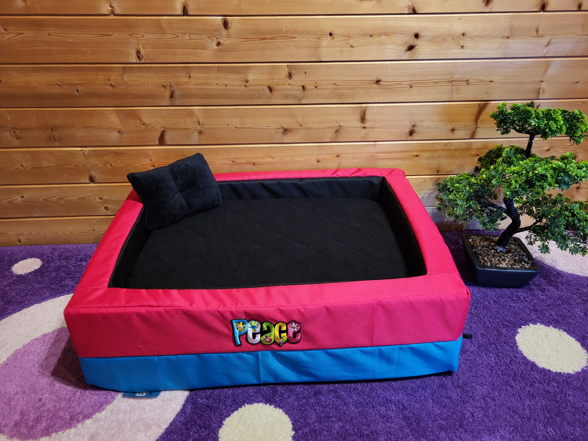 Komfortos, egyedi kialakítású fekhely, stabil peremmel és vastag beslő matraccal.