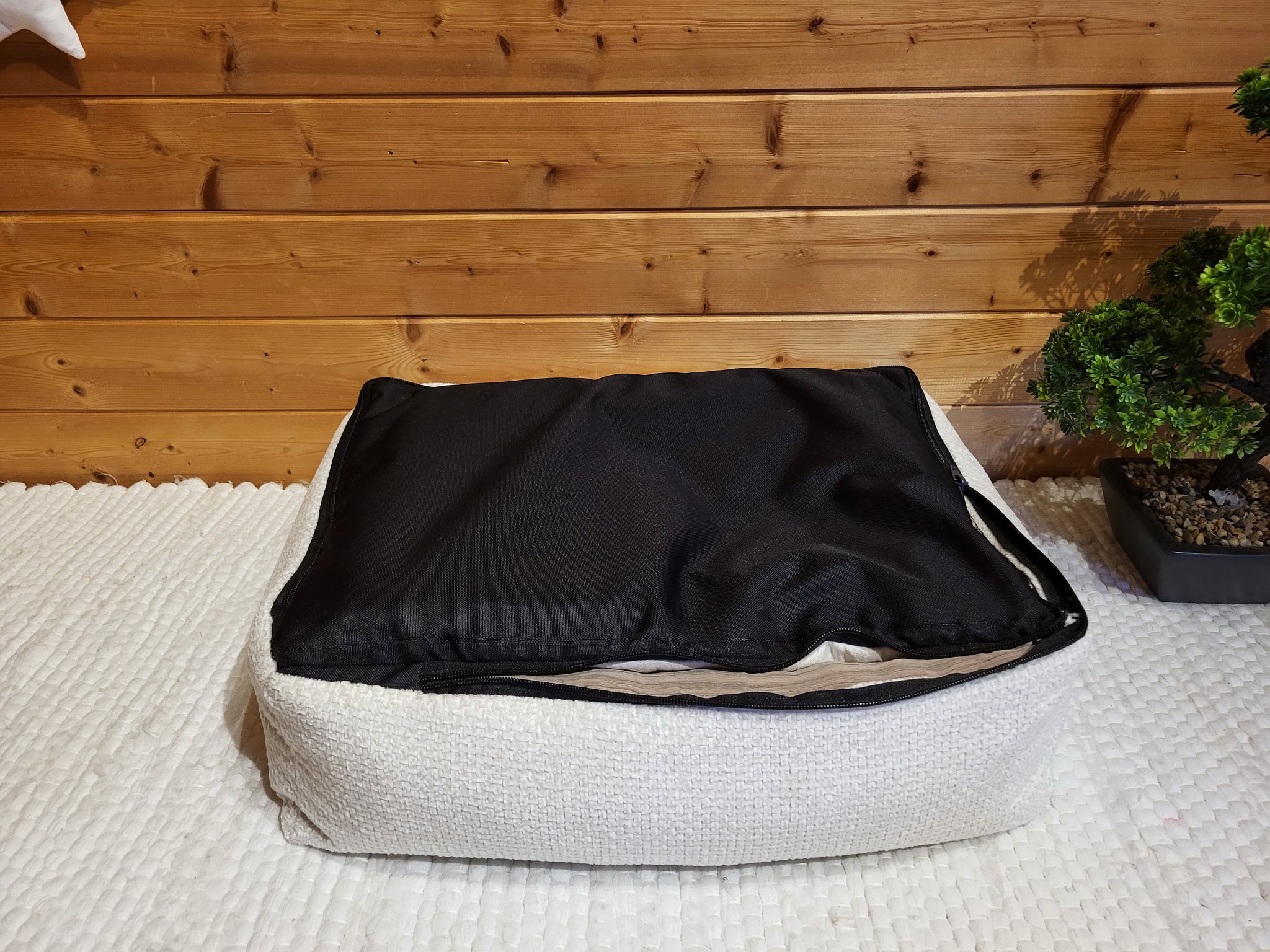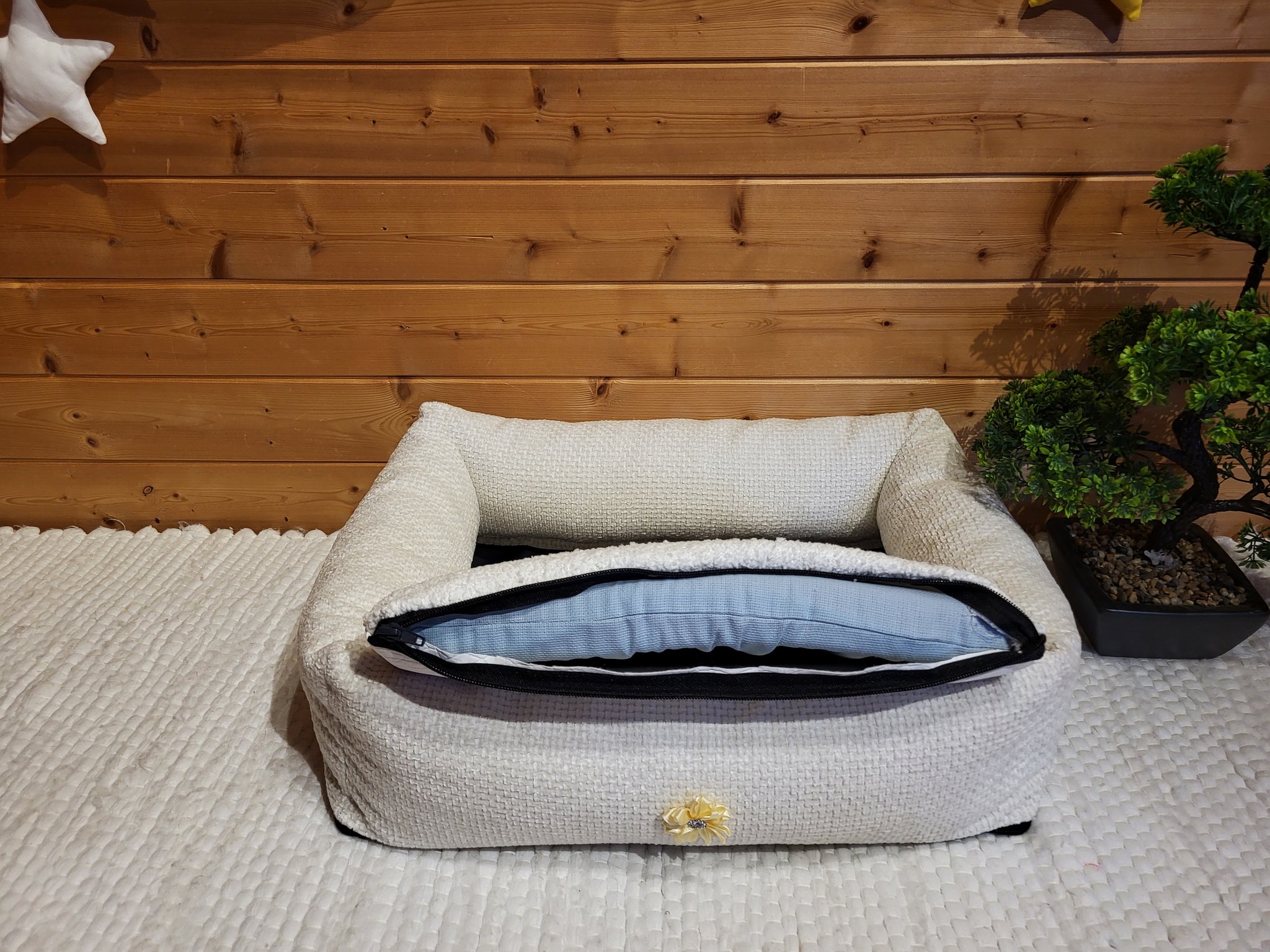 A fekhely alján cipzár fut körbe, így a huzat könnyen le-és felhúzható, külön a fekhelyről és külön a