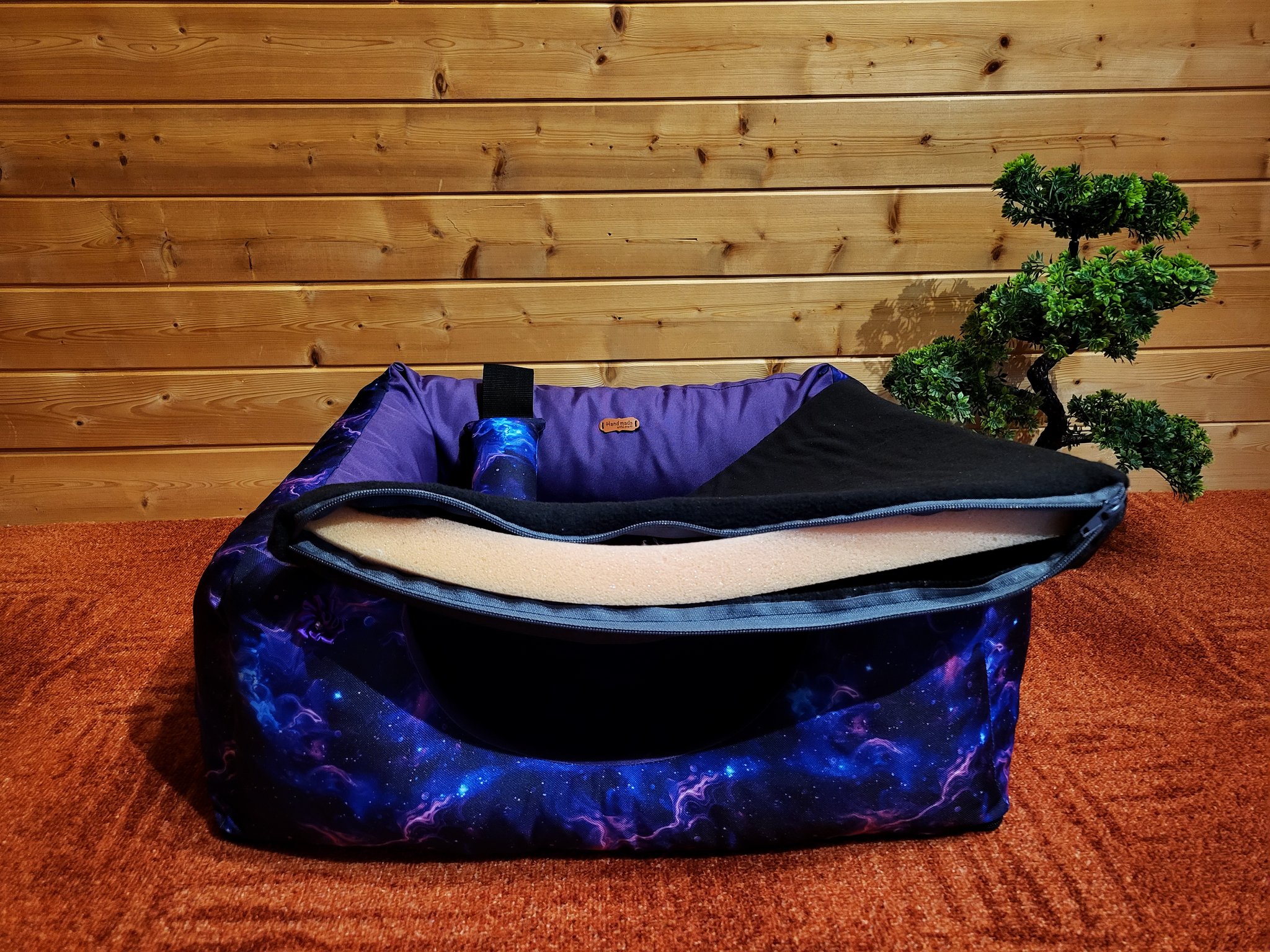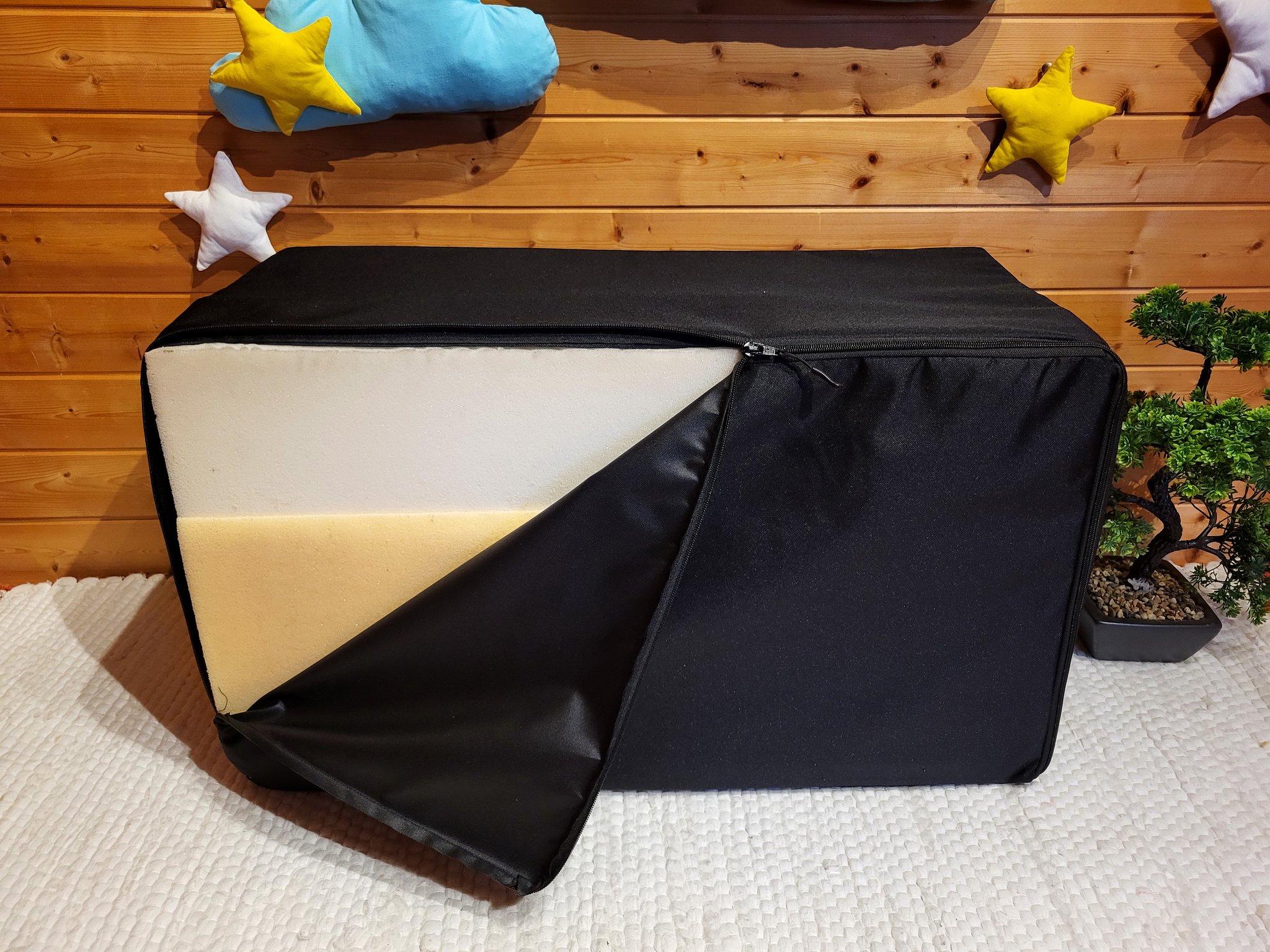 A belső memóriahabos matrac, dupla huzattal ellátott, kivehető, megfordítható, lehúzható és mosható (egyik oldala polár plüss, másik oldala vízhatlan erős kárpitszövet)