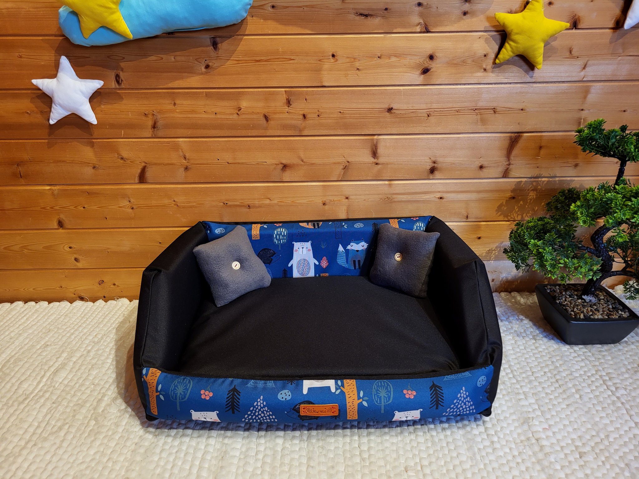 - Anyaga: Víz, szőr és kaparásálló poliészter illetve polár plüss