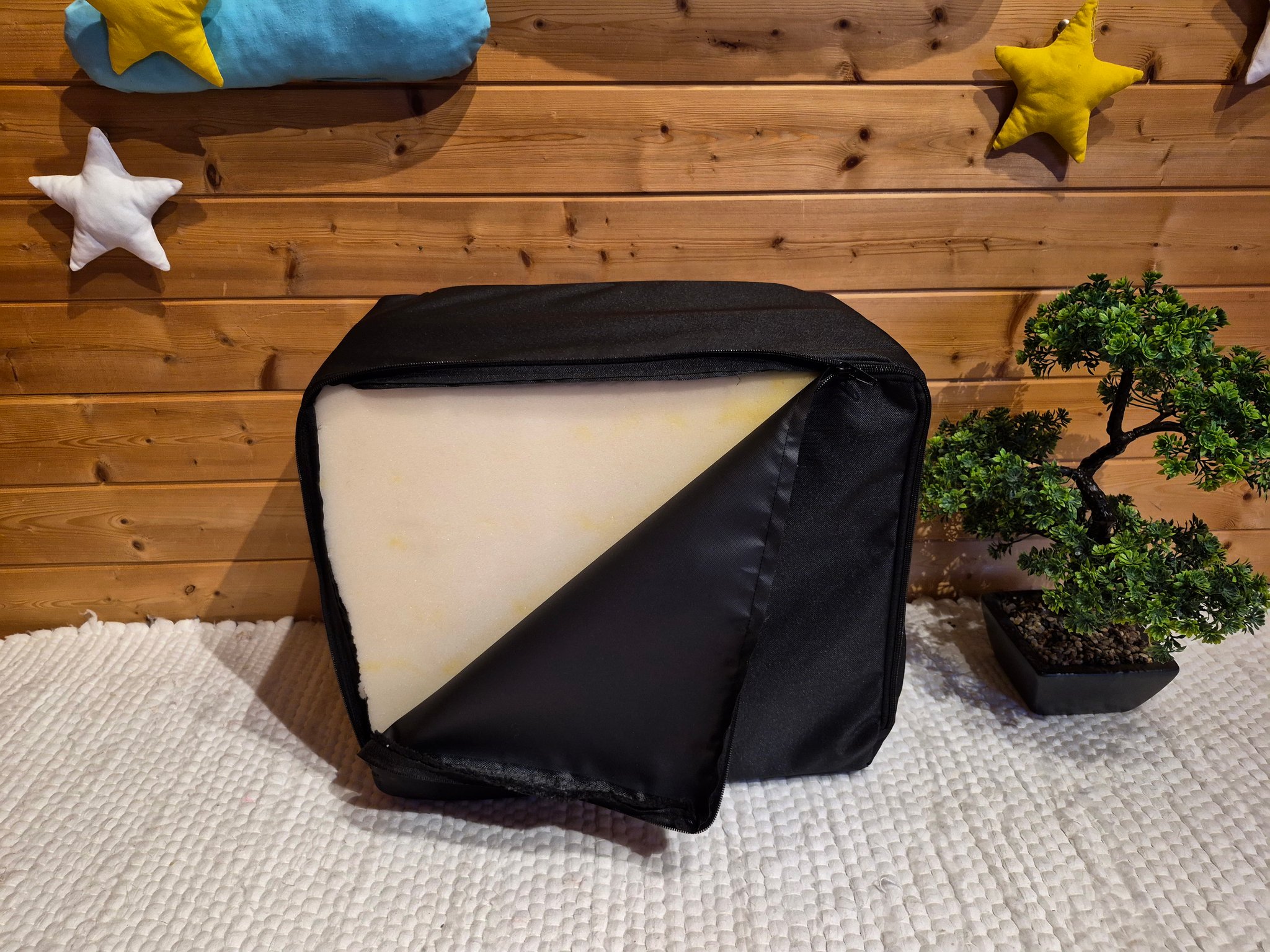A belső, vastag memóriahabos matrac kivehető, lehúzható és megfordítható
