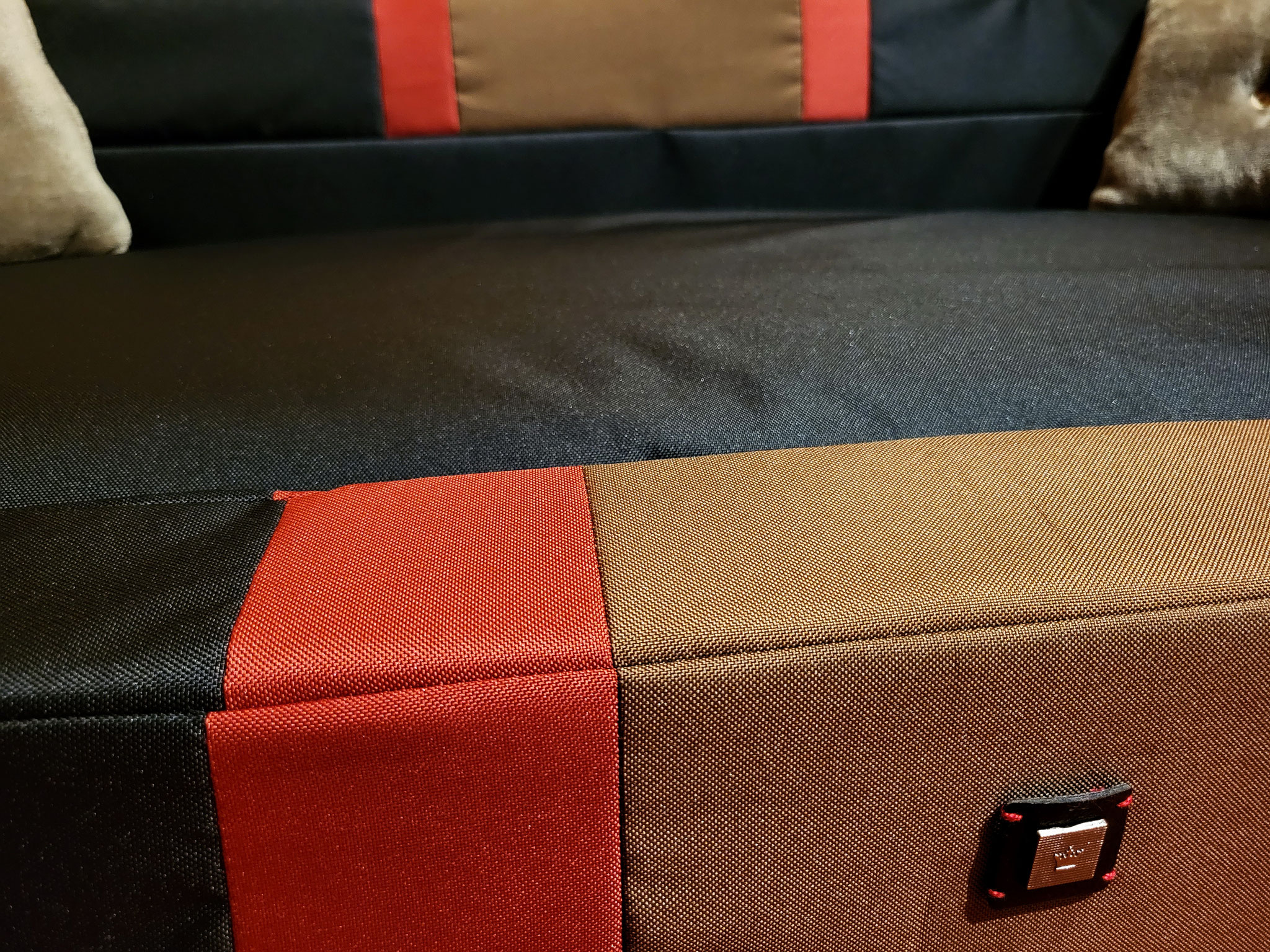 Kiváló minőségű, vastag kárpitszövet fekvőfelülete kényelmes pihenést biztosít a hidegebb napokon is