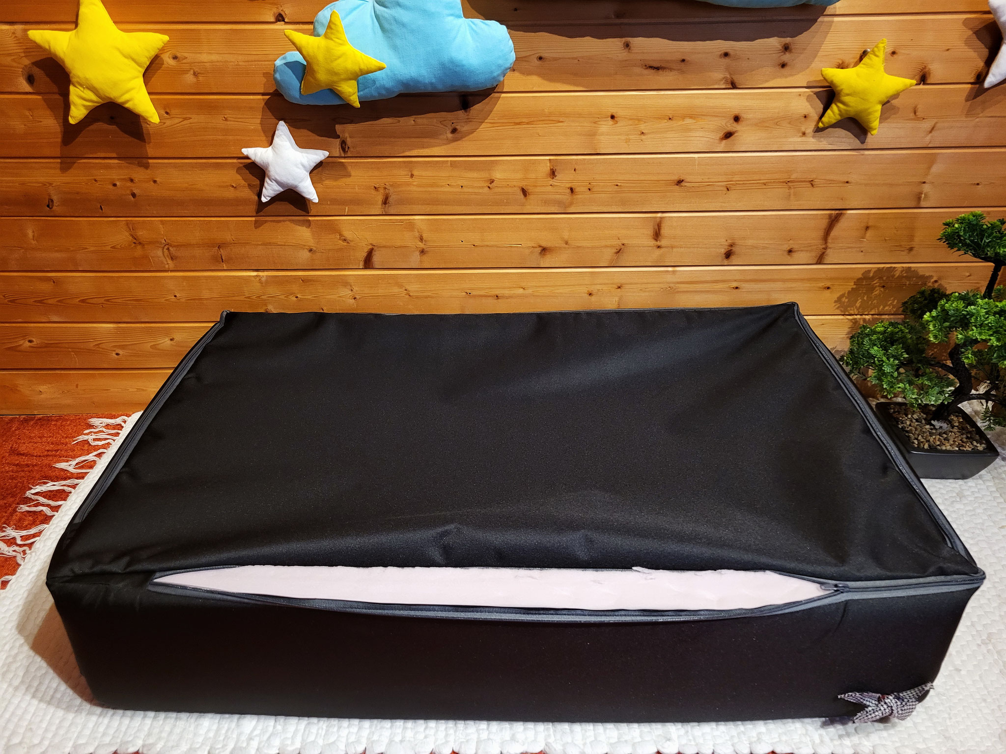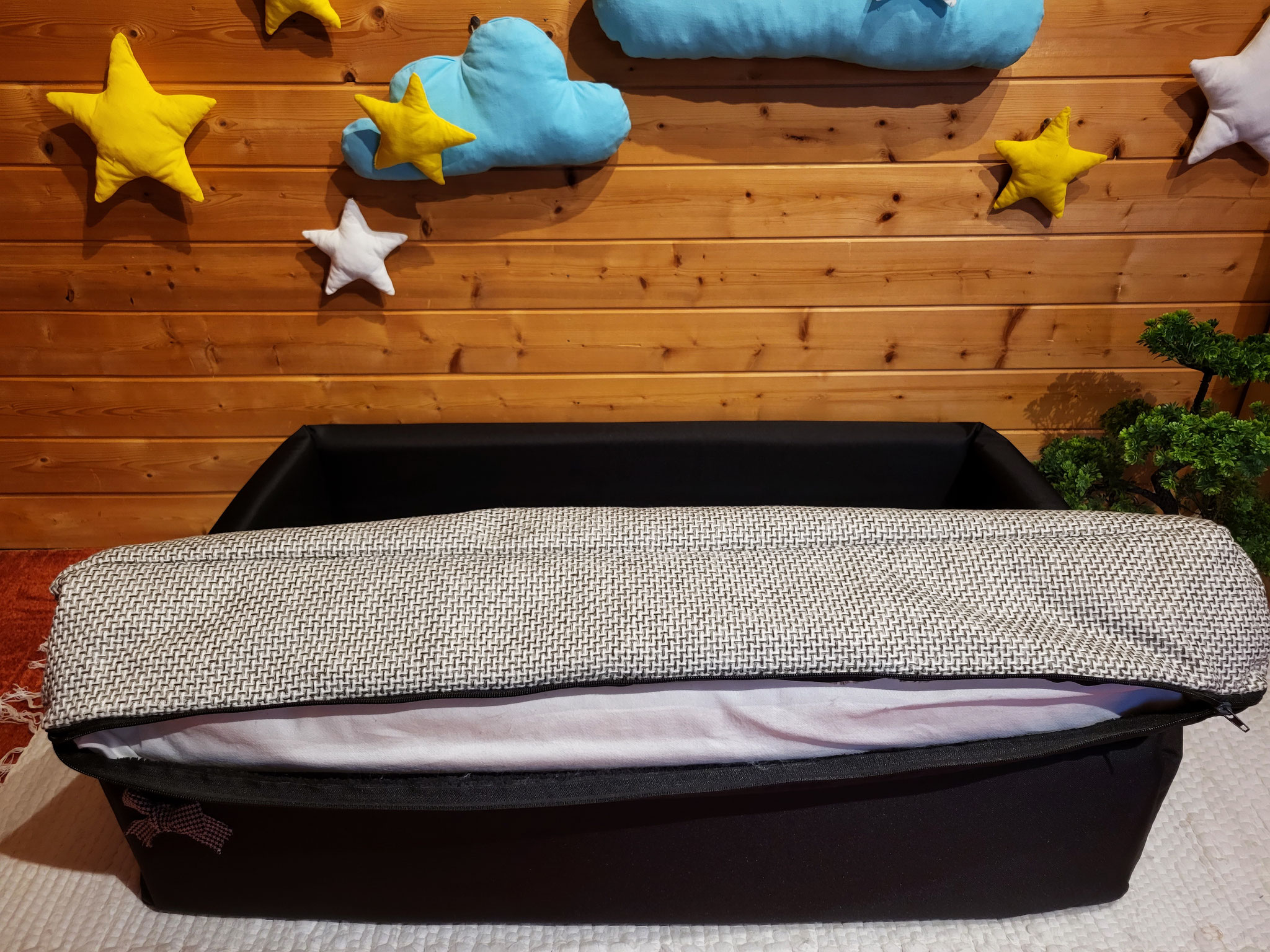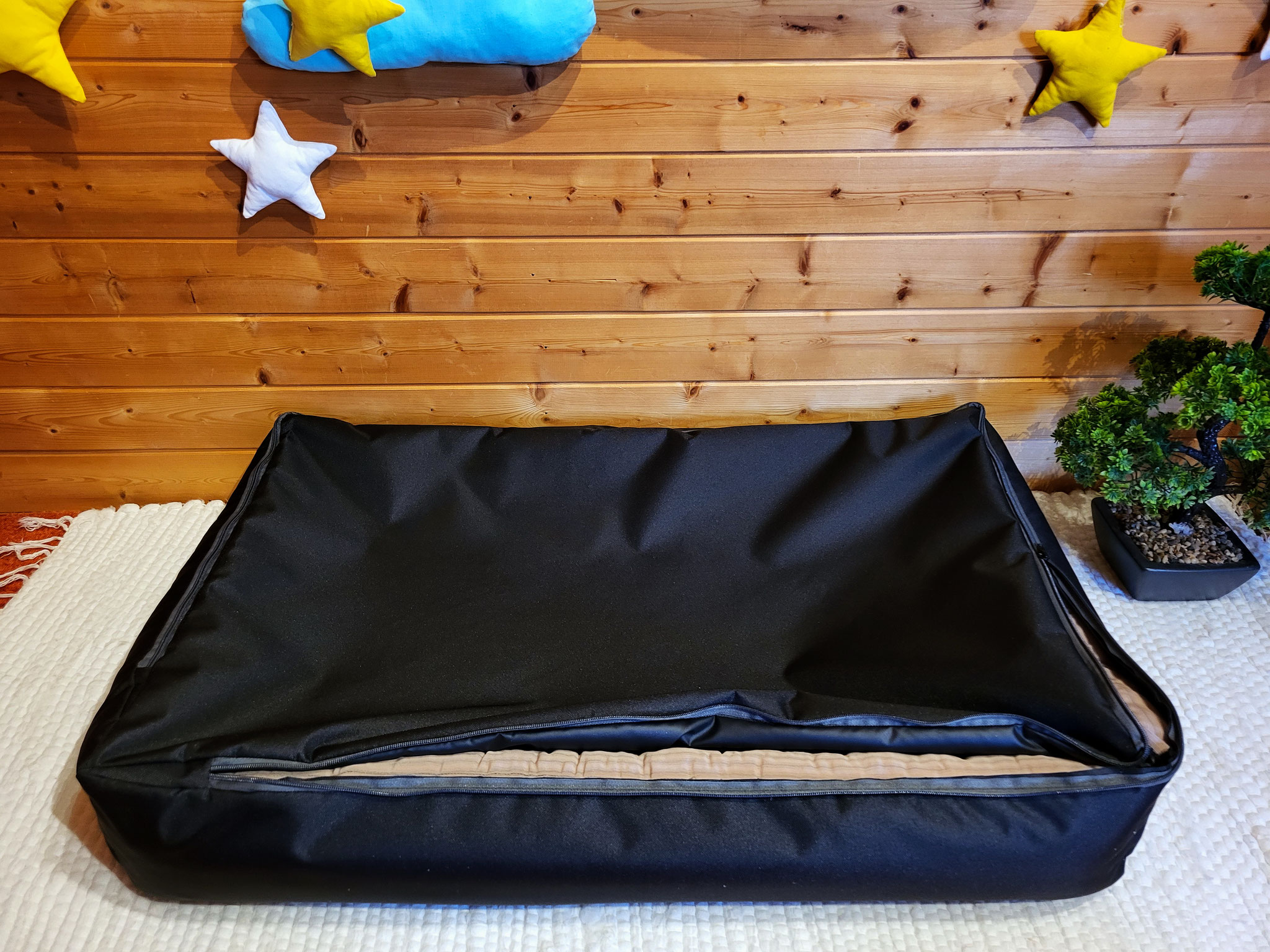 • A belső matrac dupla huzattal ellátott, kivehető, megfordítható, lehúzható és mosható (egyik oldala vízálló, másik oldala plüssös)