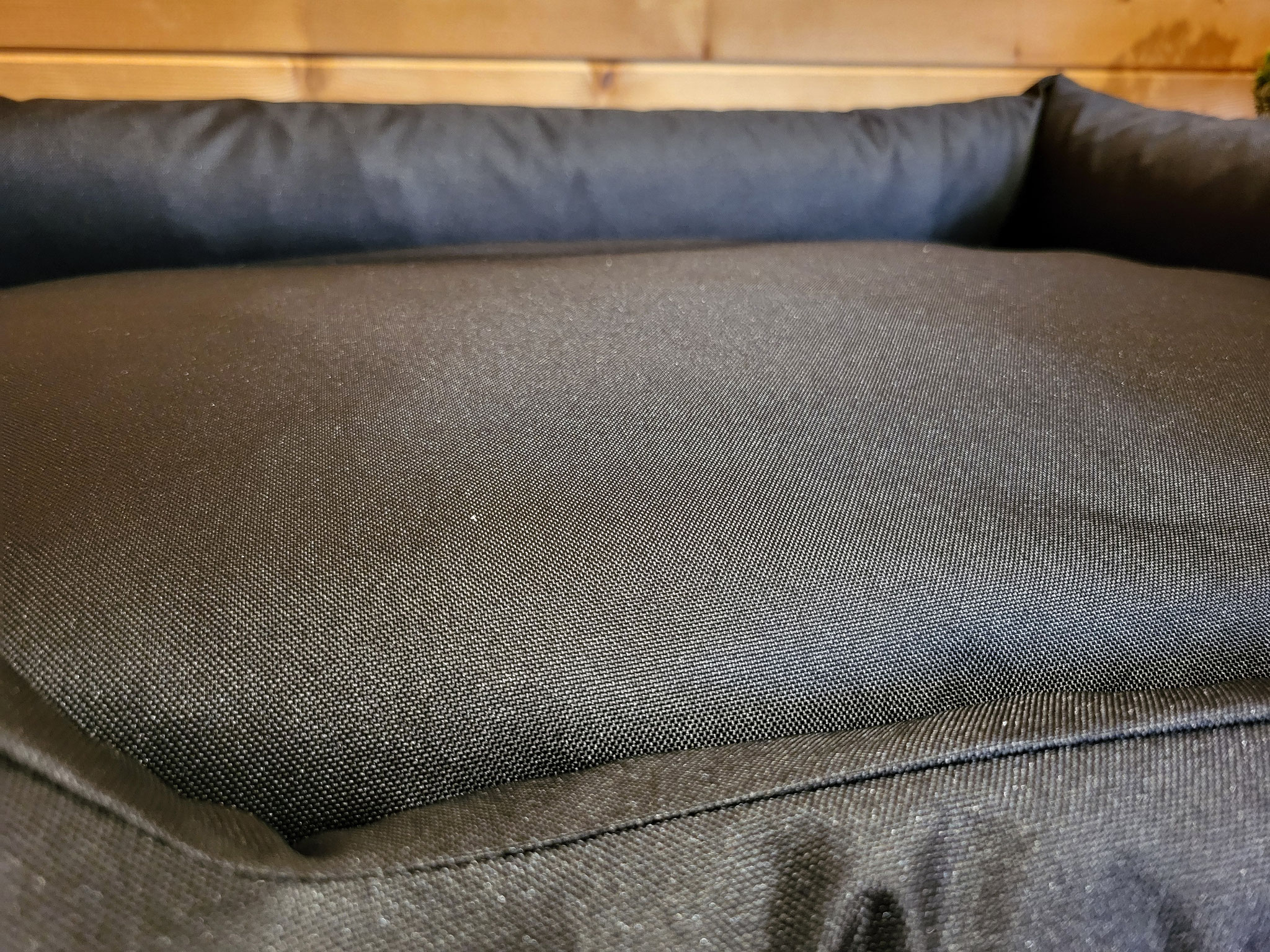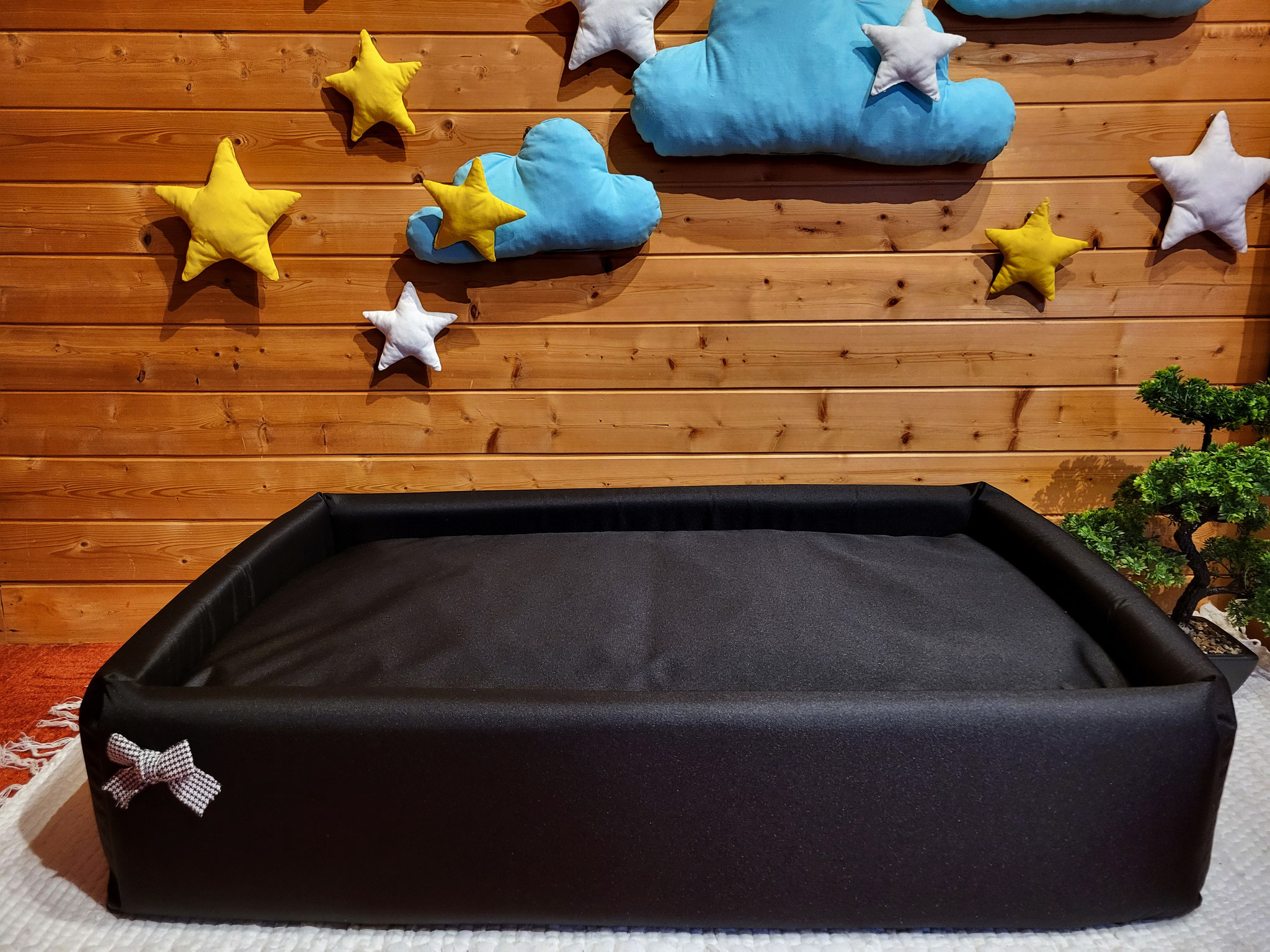 Megszokott, masszív peremű fekhely, ami jól megtámasztja kedvence fejét és hátát.