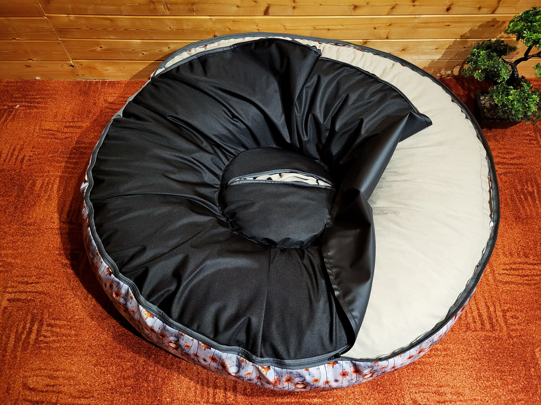 A fekhely alján cipzár fut körbe, így a huzat könnyen le-és felhúzható