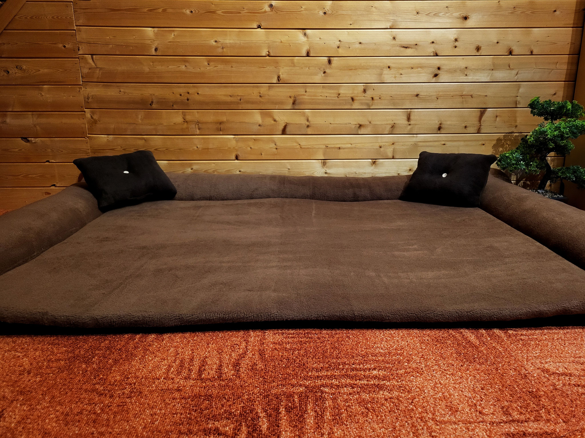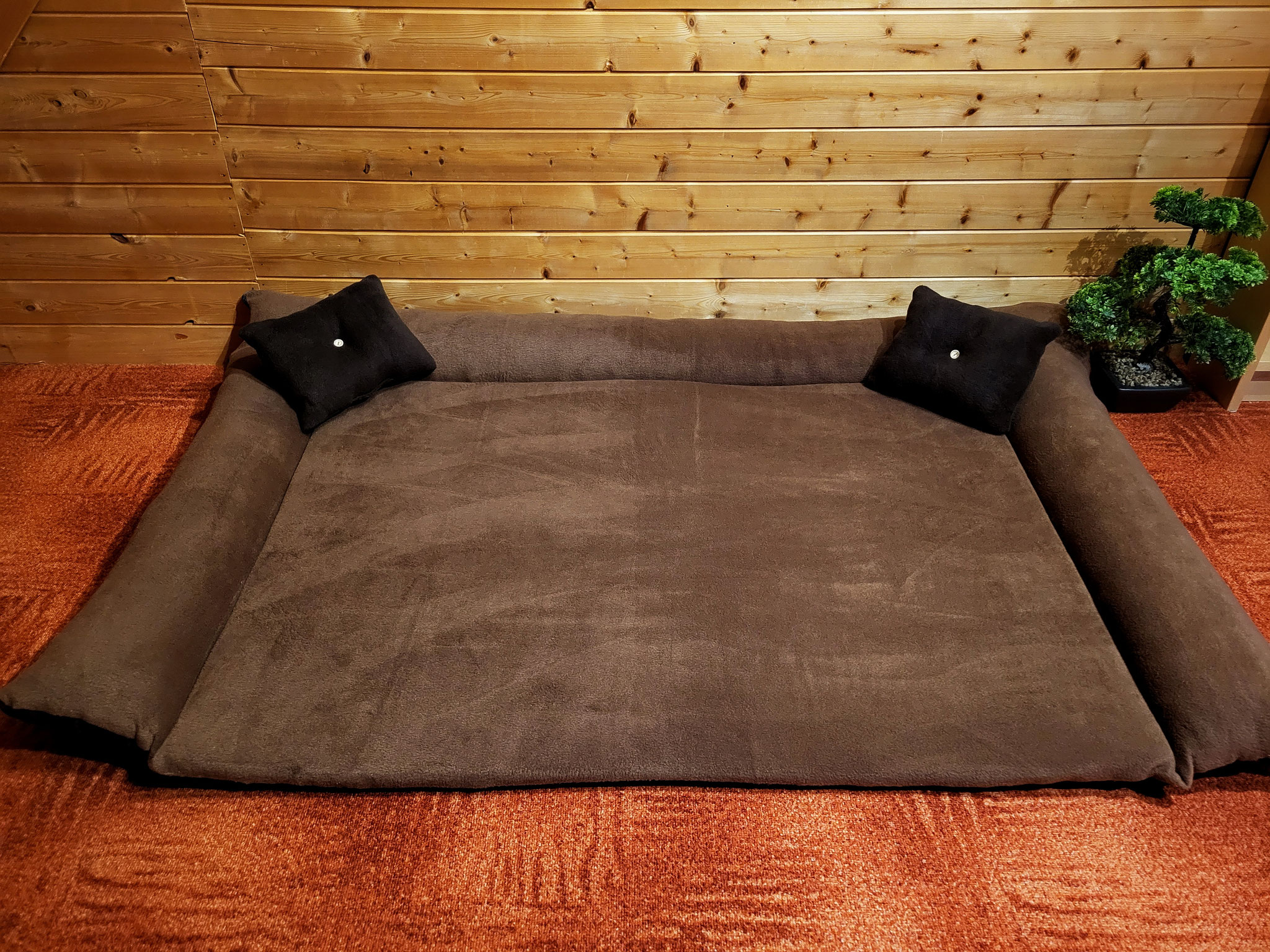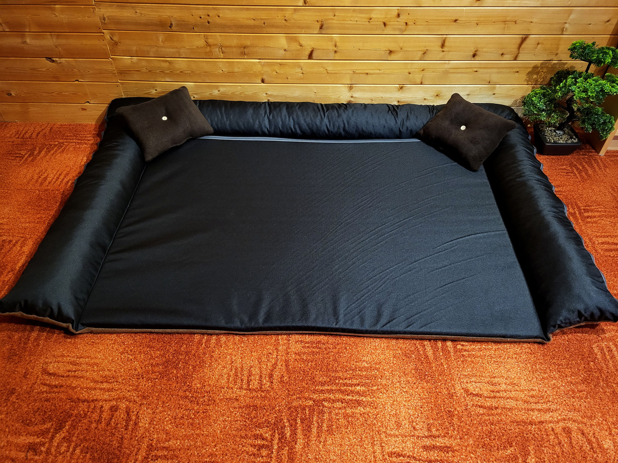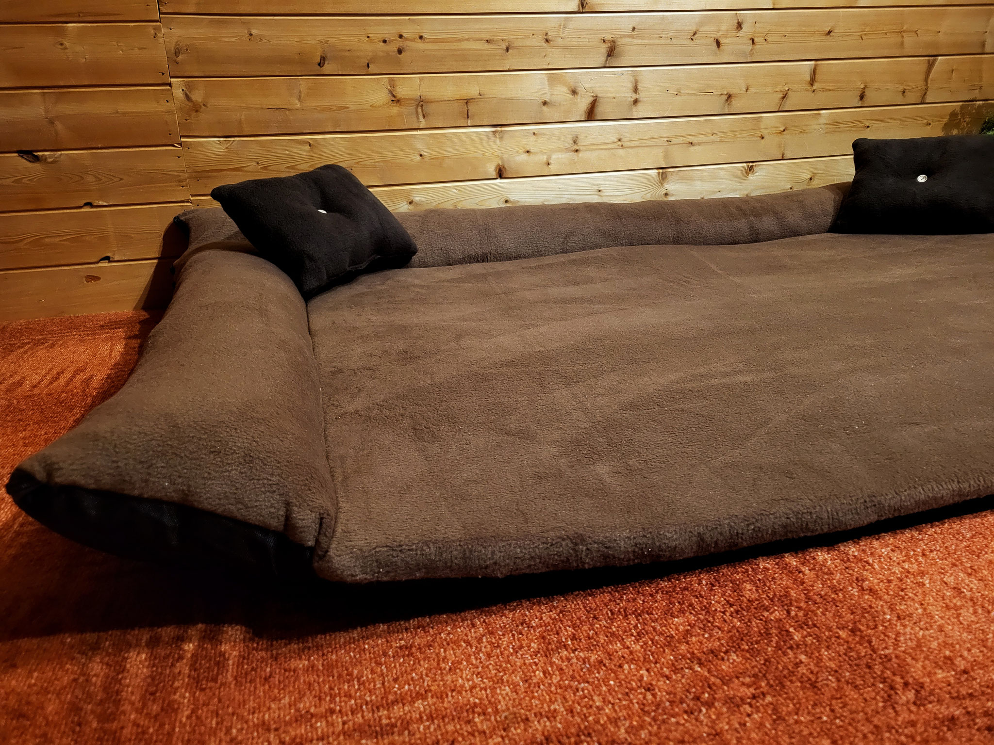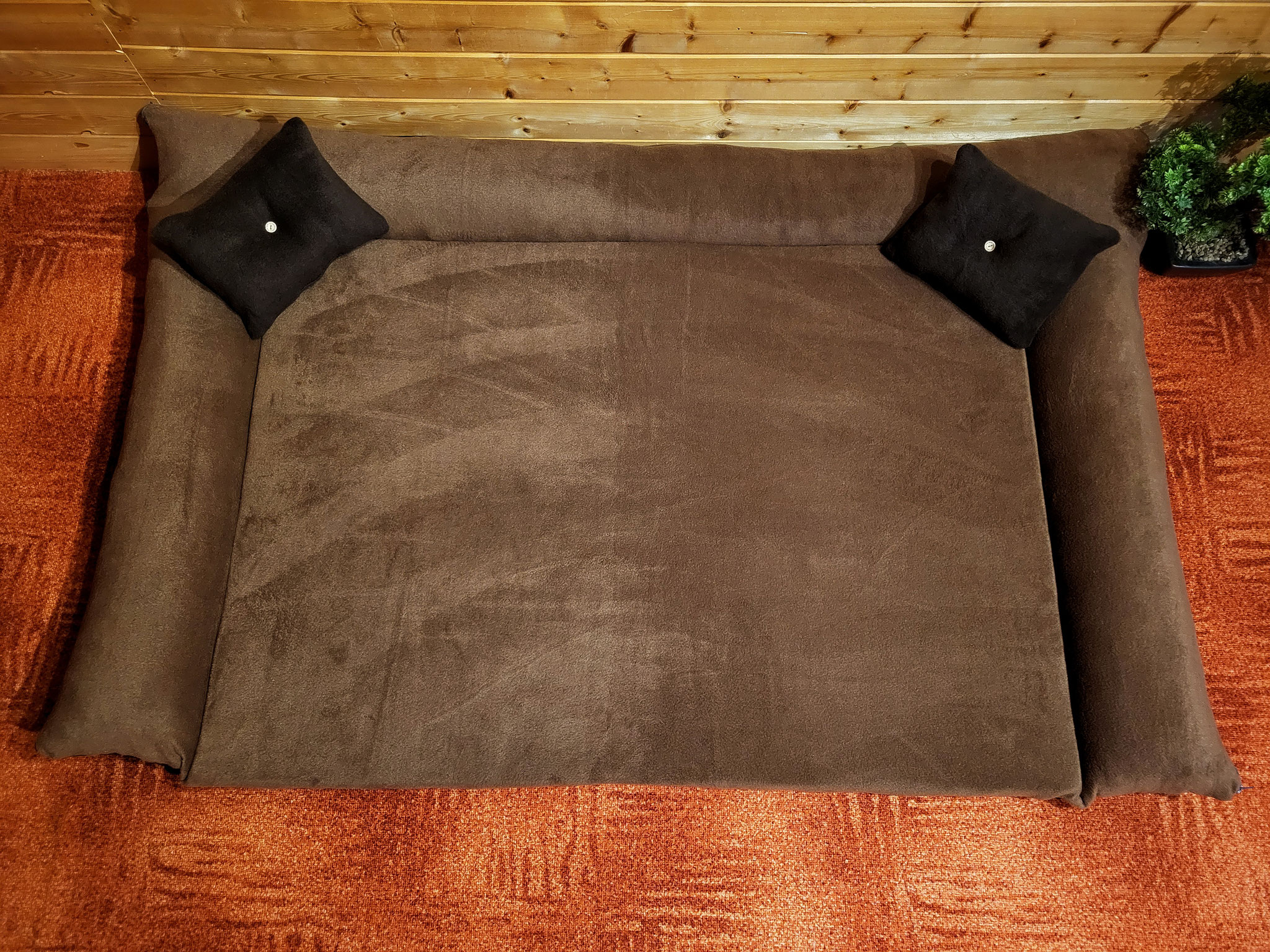 Egyszerű, de elegáns megjelenésű, tágas kutyakanapé kivehető belső matraccal.